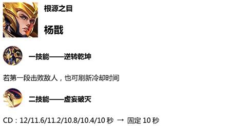 改动直接增加了杨戬对一技能的容错率,就算挂在小兵被队友击杀或挂在敌方英雄被队友击杀,也可刷新技能冷却时间,