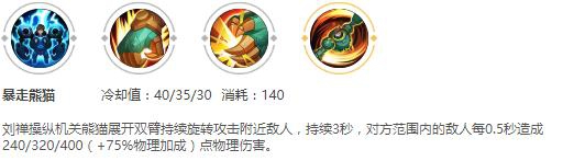 1、刘禅张开双臂快速旋转3秒,每半秒对范围内的敌人造成高额的伤害。