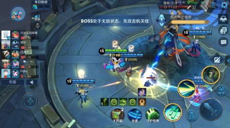 打完小怪后就可以输出boss了,boss会全屏随机发光弹,落到地上还有持续伤害,这个boss有三种特殊机制,一个是放光芒,这时候东南西方随意一侧会出来朝着boss 的箭头,这时候就要有个人到那里挡着光,光照到boss,boss会回血,这个时候boss会放圈圈球,一圈一圈,放两圈,这时候要远离boss,近战也一样,不然可能会被秒。站到发光的一侧,三角形的黑暗区域对准boss就可以了,这很关键千万不要让boss回血,因为有时间限制,回血太多的话很容易失败,而且boss一轮一轮放技能,扛不住伤害的。