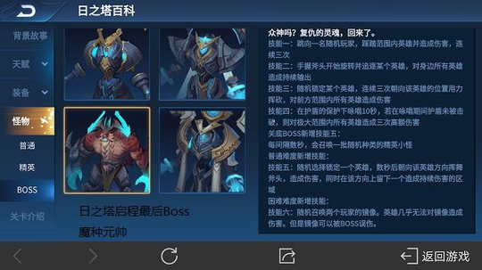 困难模式会增加技能六,boss会召唤小怪,还会召唤英雄镜像,这boss还有时间规定所以必须要快节奏不能乱,这里说一下召唤出来的镜像最好用击退打他们打到boss旁边,一起输出,因为boss对它们也有伤害。