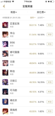 百里玄策出场率相较上周经历翻倍式的增长,胜率继上周之后继续蝉联全英雄首位。