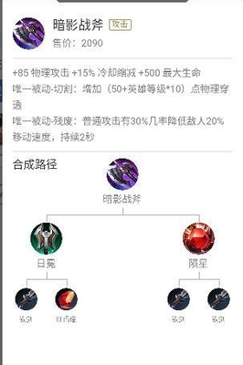 首先这套装备,放弃了破晓加上了暗影战斧这件装备,放弃了复活甲和名刀换成泣血,我们先来看暗影战斧这件装备