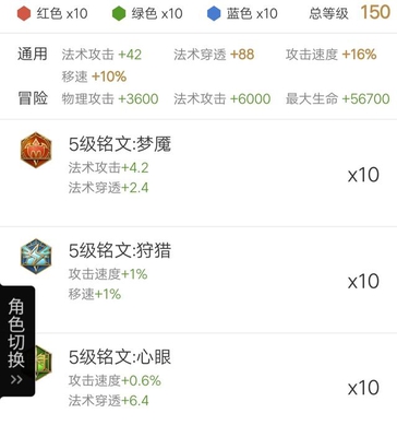 铭文方面张良追求的是移动速度、法术攻击和攻击速度。我们带常规的88法穿就好了