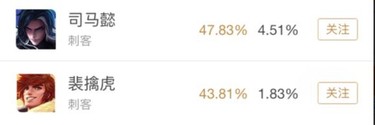 从本周数据可以看出,刺客的表现总体来说没有射手那样的两极分化,比较稳定,总的来说排在前几位的刺客虽然没有前几位射手那么亮眼。但是本赛季百里玄策的崛起是刺客玩家最大的惊喜。仔细分析一下, 其实百里玄策的崛起并不让人意外,当前版本优化了百里玄策2技能的释放手感和僵直的问题。使得百里玄策能够发挥出他真正的实力。百里玄策可以说是一个完美型的刺客,首先3个技能都有位移效果,并且大招能够打出多段的位移和伤害和免伤。这使得百里玄策是一个可以有无限上限的英雄。大招的被动技能更使得他成为残局收割机。不过官方给出的操作难度是9星,这表示要想玩好百里可不是那么简单的。不过作为本赛季最大的黑马,其恐怖的胜率使得他成为了禁选英雄的常客。裴擒虎胜率43.81%(数据来源均来自王者荣耀助手)成为刺客垫底的英雄。