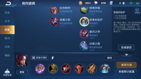 推荐理由: 这套装备具备一定防御能力,更偏向于输出能力的打野装备,具备非常全面的属性,对韩信的提升非常的巨大,拥有破甲能力、暴击效果、吸血效果,而且攻击和暴击都得到很大的提高,最后还具备复活的能力,让韩信被击杀后,复活的瞬间就可以利用1技能和2技能迅速逃生,作用非常的明显;因为韩信自身的被动效果就具备了高攻速的能力,所以我们这套装备主要玩的是高机动的切入效果,瞬间的切入,再通过1技能的挑飞,进行强效的控制,然后利用无尽之刃和碎星锤的强力爆发,让韩信的输出能力几乎可以无视护甲,抓人的能力变得更强。