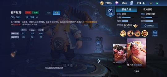 猪八戒是拥有两个霸体效果技能的英雄,这个一定要知道,一技能跟大招释放的时候都是霸体,所以在看到妲己的控制时可以及时使用一技能摆脱控制。