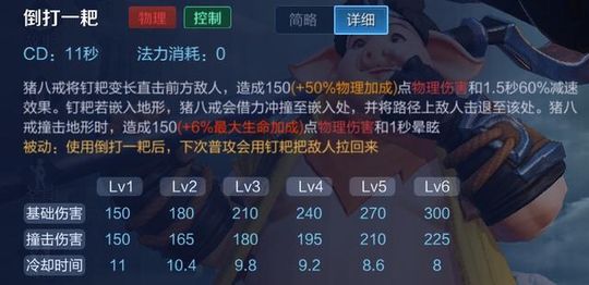 八戒:那什么西瓜皮太多,脚滑了一下...不碍事,我还可以把人钩过来,虽然只能钩一个钉耙那么远...(被动,二技能后下次普攻拉回敌人)