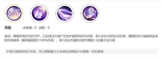 虽然嫦娥是整个王者峡谷初始血量最低的英雄,但她的被动却用她的法力值即蓝量为她提供了能够抵挡高达60%伤害的护盾,因此嫦娥相对于其他法师还是有着不俗的抗压能力。