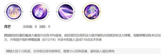 并且被动可以得出嫦娥的伤害依蓝量多少而增减,而法术强度也与最大法力值息息相关,法强越高,蓝量越多,因此在对局中,嫦娥的蓝量尤为重要。