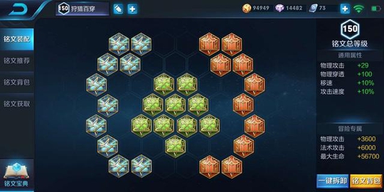 有两种铭文推荐, 一是10狩猎,10鹰眼,10异变的百穿铭文, 优点是配合上暗影战斧在前期就有很高的爆发能力,伤害非常高。