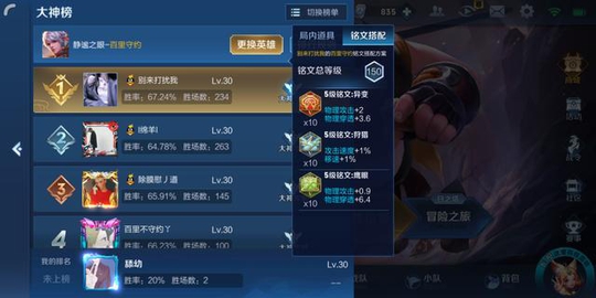 铭文方面推荐:狩猎百穿