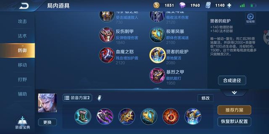抵抗鞋可以减少对面控制能力,铠皇这个英雄还是很怕被风筝的所以抵抗鞋可以让铠皇机动性更强!黑切是战士的标配,不管是冷却物穿都是战士非常需要的属性!是战士的核心装备。第三件宗师之力进一步增加铠皇的伤害,半肉铠皇在拥有宗师以后伤害已经非常的恐怖,直接切后排十拿九稳!二技能接强化平A,对面脆皮基本已经残血! 第四件极寒风暴配合黑切的冷却缩减达到35%,可以让铠皇更加频繁的使用技能,同时一技能冷却更快也能让团战中铠皇的生存能力以及追击能力得到大大提高!第五件不死鸟的血量以及额外生命值回复可以让铠皇回复能力大大增强! 后期一技能1600+回血三四下一技能血线就上来了!在拉锯战中可以利用野怪进行回复等待大招再次出其不意的进入战场!