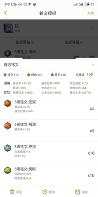 铭文推荐: 10狩猎 10鹰眼 5无双5祸源