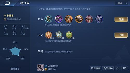 普通攻击附带最大生命值0.5%,也就是说,有高血量就高伤害。这就要求猪八戒出很多肉装。