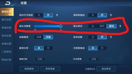 设置镜头滑动,可以拖动屏幕的。选择滑动,可以看视野比较好用的一种。