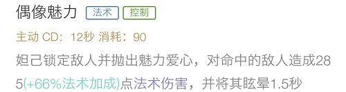 二技能:偶像魅力 (简单来说,是个强控技能,最好先手放出,然后紧接着释放其他技能。)