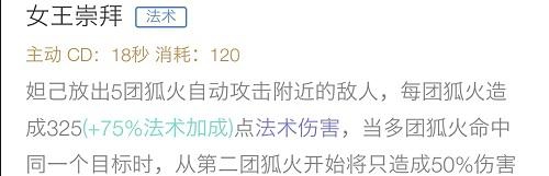 大招:女王崇拜 (连续伤害,伤害值在三个技能中位处最高,但要注意,在释放此技能时要确保旁边没有小兵,不然伤害难免会飘到小兵上。)