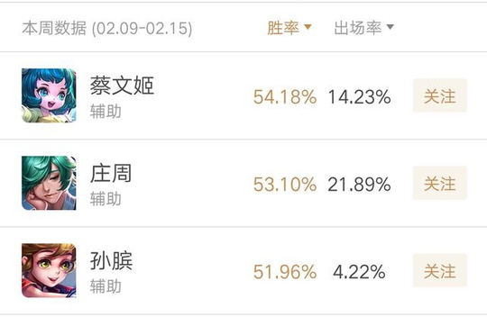 目前蔡文姬胜率最高,出场率也稳居第二,肉起来的蔡文姬超级烦人,在木钱了来说威胁还是很大的。