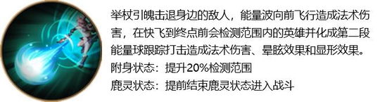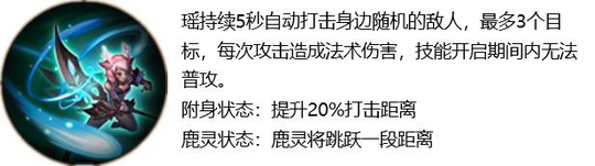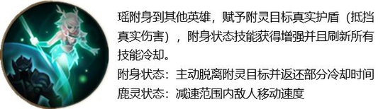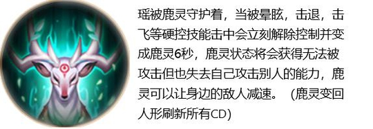 只要被敌方控制住,瑶会立即变身有鹿灵状态。而且期间无法被敌人选中自己也无法攻击,但是可以释放技能。