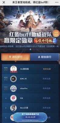 1、2019年春季赛常规赛第一周(3.06-3.10比赛日)期间,玩家可以通过赠送所有礼物为战队打榜参与活动。红蓝buff助威道具可获得额外10%人气值加成。