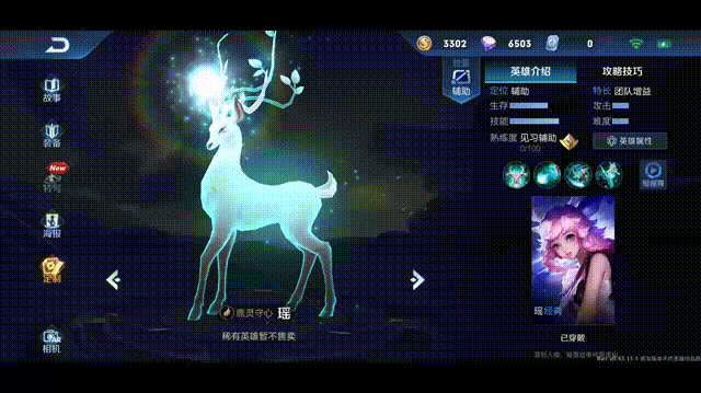 由鹿化人,一副丛林精灵模样;定位辅助,特长团队增益。但目前来看不仅仅是辅助,瑶伤害不俗,可以作为输出位来打,下文会详细讲解。