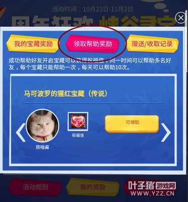然后在弹出的页面中选择“领取帮助奖励”,就可以领取协助的祝福值啦,要记住如果好友的宝藏还没有挖掘完毕是无法领取的哦!