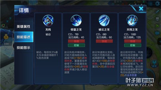 解析:赵云重要的位移技能,在后期的冷却时间极为短暂,该技能是他深受玩家青睐的重要原因之一。该技能为赵云提供位移的同时可强化他的普通攻击,对敌方英雄造成不俗的伤害并且附带减速效果,可谓一举两得。