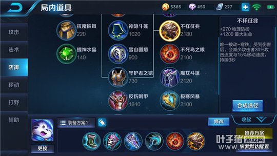 六神装推荐:抵抗之靴+痛苦面具+冰痕之握+冰霜法杖+不死鸟之眼+不祥征兆