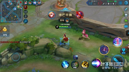 分析:妲己事先在安全位置进行输出,待敌人进入攻击范围内后,妲己释放二技能控制敌人,并配合大招进行多段伤害,若是敌人残血,可以利用一技能进行收割。
