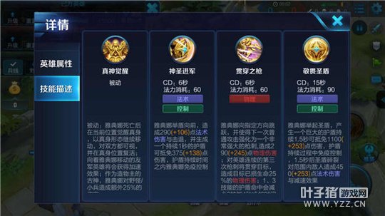 被动-真神觉醒:雅典娜死亡后会在当前位置觉醒,以双方可视的真身形态继续移动,并会在真身位置复活,向雅典娜移动的友军会获得移速加成。雅典娜对野怪和小兵也能造成额外的伤害。