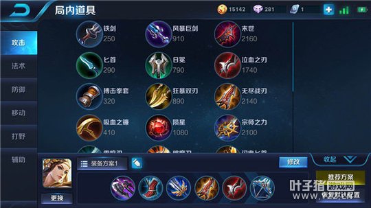 出装推荐:暗影战斧+冷静之靴+破军+无尽战刃+泣血之刃+破甲弓