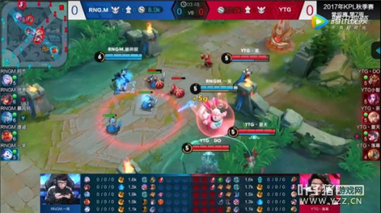 精彩发挥:比赛进行到3分46秒,双方在中路遭遇爆发团战。梦奇带着护盾一马当先脸探草丛,随后对手发动进攻,梦奇顶护盾为队友分担伤害,双方互换技能后,RNG.M这边几乎满血,而对手的鬼谷子已经残血,随后梦奇配合诸葛亮将其击杀。
