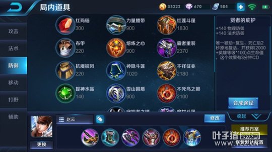 赵云的出装偏向于战士出装,但是他的打法却更接近于刺客,赵云的被动极大地提高了他的生存能力,并且赵云的一技能可以为其提供一段位移同时强化普攻减速敌人,二技能可以造成一个AOE伤害,大招更是强有力的开团技能,也可以作为反手保护队友,赵云是一个十分全面的英雄。