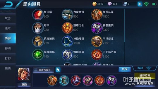 六神装:红莲斗篷+抵抗之靴+血魔之怒+暴烈之甲+不死鸟之眼+霸者重装