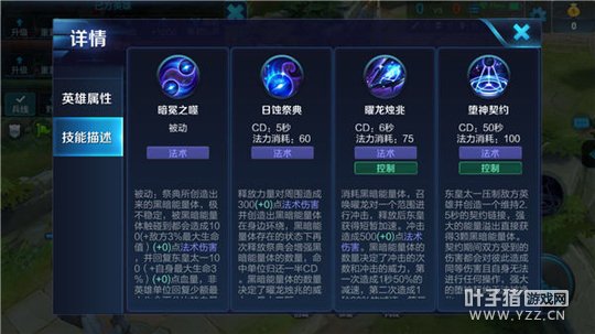 一技能——日蚀祭典:一技能是东皇太一伤害输出的主要来源,自身周围能量体越多,被动的吸血和伤害输出效果越明显,同时二技能的伤害和控制效果也会越强。