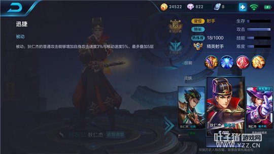 狄仁杰的被动技能可以为他提供强大的机动性和灵活性,当狄仁杰使用普通攻击时,将会增加自身的攻击速度以及移动速度,并且可以叠加一定的层数,当与敌人对战时,尽量多用普通攻击将被动叠满,即便有敌方英雄想要来强抓狄仁杰,也可以通过放风筝的方法来快速牵制敌人,因为被动技能增加的移动速度可以让狄仁杰快速的摆脱敌人的攻击范围。