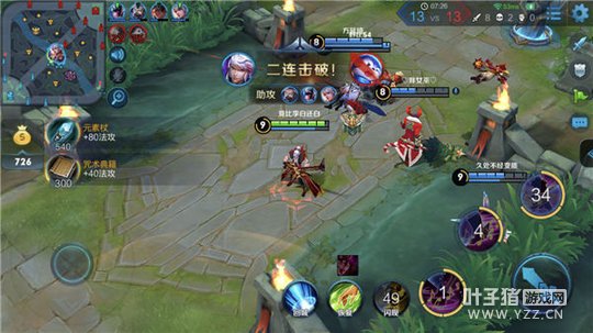 分析:在寻找到合适时机后,果断开启大招冲入人群当中,并释放二技能打出控制效果,最后利用一技能的弹射效果补足伤害,期间可凭借被动的强化普攻再次对敌人造成不俗的输出效果。