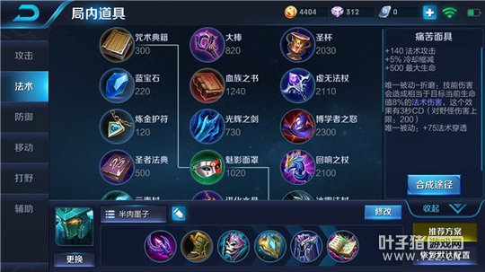 分析:时之预言提供法术攻击、最大法力和最大生命加成,被动-英勇奖赏在墨子每次升级时,可回复一定的生命值和法力值,被动-守护在墨子提升法术攻击时,提升其物理防御和法术防御,使之在前期对线时可以更加稳健;影忍之足增加移动速度和物理防御,若敌方英雄控制较强,则需要换成抵抗之靴增加自身韧性;痛苦面具提供一定法术攻击、冷却缩减、法术穿透和生命值,被动效果在墨子技能造成伤害时,将附加额外的法术伤害;极寒风暴大幅缩短技能的冷却时间,带来一定的法力和物理防御加成,其被动-冰心在墨子受到单次伤害较高时,能触发寒冰冲击,降低附近敌方的移速和攻速;魔女斗篷可以在墨子脱战后提供的护盾,能为其抵御部分的法术伤害,避免后期被敌方法师针对,导致被一套秒杀的尴尬情况;贤者之书大幅增加墨子的法术攻击和生命值,是法师后期必不可少的装备。