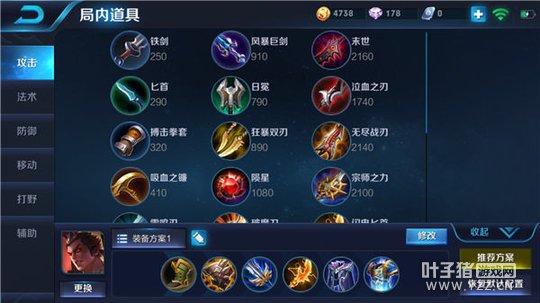 分析:破军提供高额物理攻击加成,使吕布能打出较高的伤害,若目标生命值较低,被动-破军能提高对其造成的伤害,提升吕布的收割能力。闪电匕首提供攻击速度、暴击率与移速加成,被动-电弧使吕布在普攻时,将有几率释放连锁闪电,对目标造成额外的法术伤害。