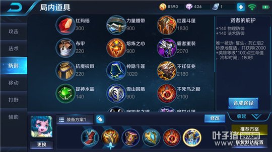 冷静之靴→奔狼纹章→圣杯→极寒风暴→不死鸟之眼→贤者的庇护