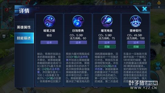 释放黑暗能量体,对周围造成法术伤害,黑暗能量体存在的状态下再次释放祭典会增多黑暗能量体的数量,命中单位归还一半CD。黑暗能量体的数量决定了曜龙烛兆的威力,最多三颗。