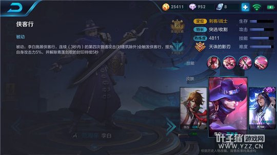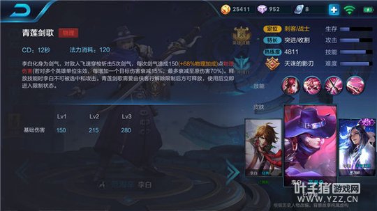 李白的技能赋予了他超强的机动性和灵活性,大招和二技能释放时不可选定的状态能够让李白及时的躲避敌人的攻击,一技能的晕眩更是可以有效的追击敌人并借助被动技能的效果轻松打出一套爆炸输出。