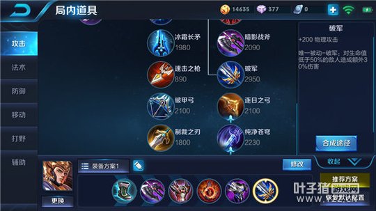 破军可以为杨戬增加高额的物理攻击加成,并且被动效果当杨戬攻击生命值较低的敌人时,能够附加额外百分比的伤害,使杨戬可以快速的击杀敌人。