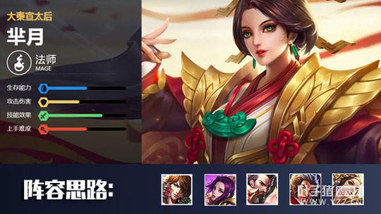 阵容分析:这是一套非常稳定的阵容选择,队伍的各项能力都比较均衡,控制、爆发、持续输出都比较充足。芈月在这套阵容可以充分发挥出自己的优势,芈月与曹操组成的双吸血阵容可以在团战中打出极佳的效果。