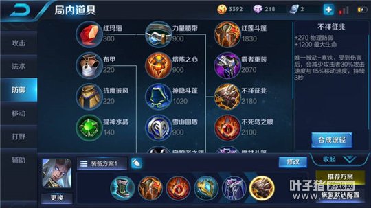 六神装推荐:抵抗之靴、红莲斗篷、不死鸟之眼、极寒风暴、魔女斗篷、不祥征兆