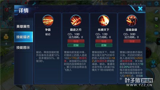 释放技能后,曹操会在短时间内大幅提高自己的攻击力与韧性,在技能命中或者普攻命中敌人时可以回复大量生命值。这是曹操的核心技能,极大提高了曹操的输出能力与生存能力,开启大招后曹操的回复能力会非常恐怖,即便被敌方集火也很难被秒杀。