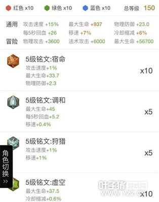 红色铭文:宿命*10 攻击速度+10% 最大生命+337 物理防御+23