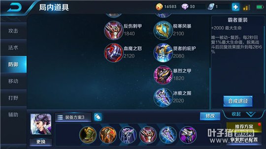 六神装:影忍之足+红莲斗篷+魔女斗篷+反伤刺甲+冰痕之握+霸者重装