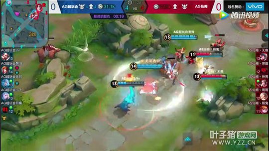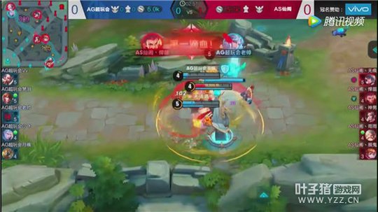蓝色方为AG超玩会,红色方为AS仙阁。