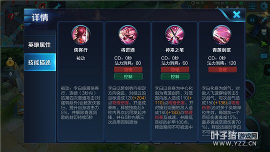 解析:李白的第四次普通攻击会触发侠客行,增加李白自身少许攻击力,同时拥有释放三技能青莲剑歌的能力。被动技能与三技能息息相关,只有掌握触发侠客行的时间,才能完美的释放三技能。